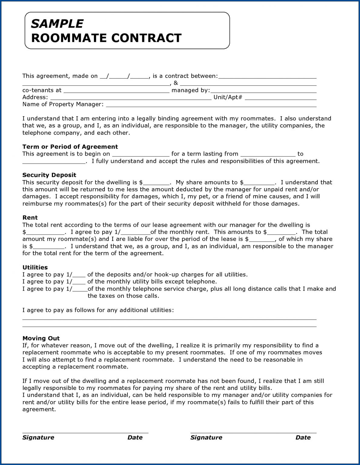 Roommate Lease Template