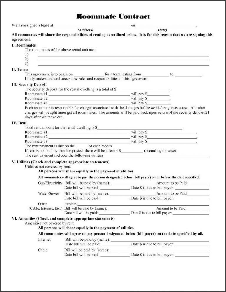 √ Free Printable Roommate Agreements Template