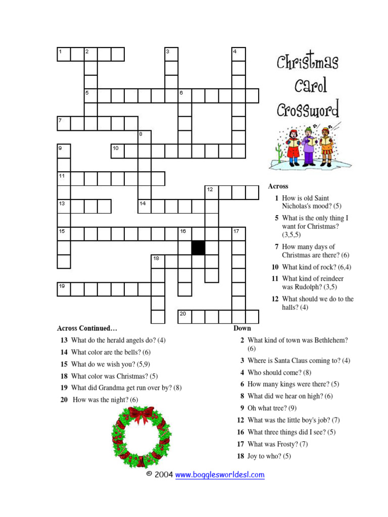 Christmas Carol Crossword Puzzle Printable FREE Printable HQ