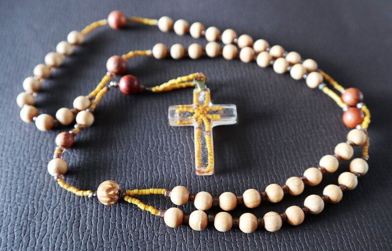 Catholic Five Decade Rosary Natural Arborvitae Wood and Rosewood Beads