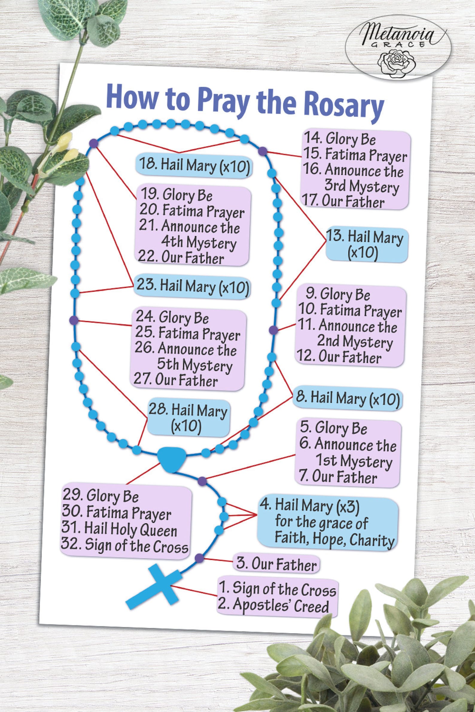 Printable Rosary Prayer Cards Holy Rosary Diagram Our Lady Etsy