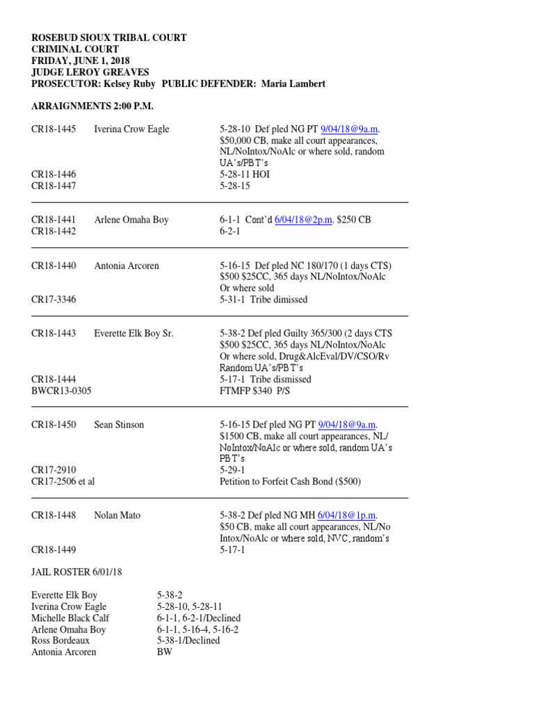 June 2018 Rosebud Sioux Tribal CourtArraignments PDF