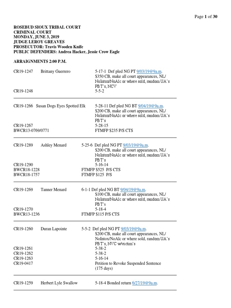 Rosebud Sioux Tribe Criminal Court June 2019Arraignments PDF