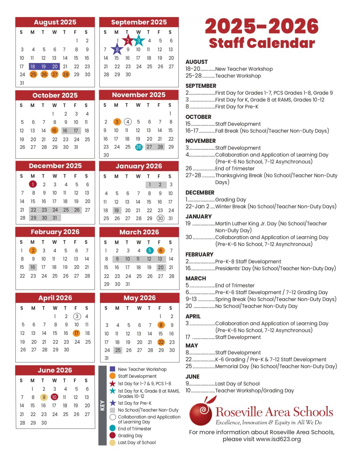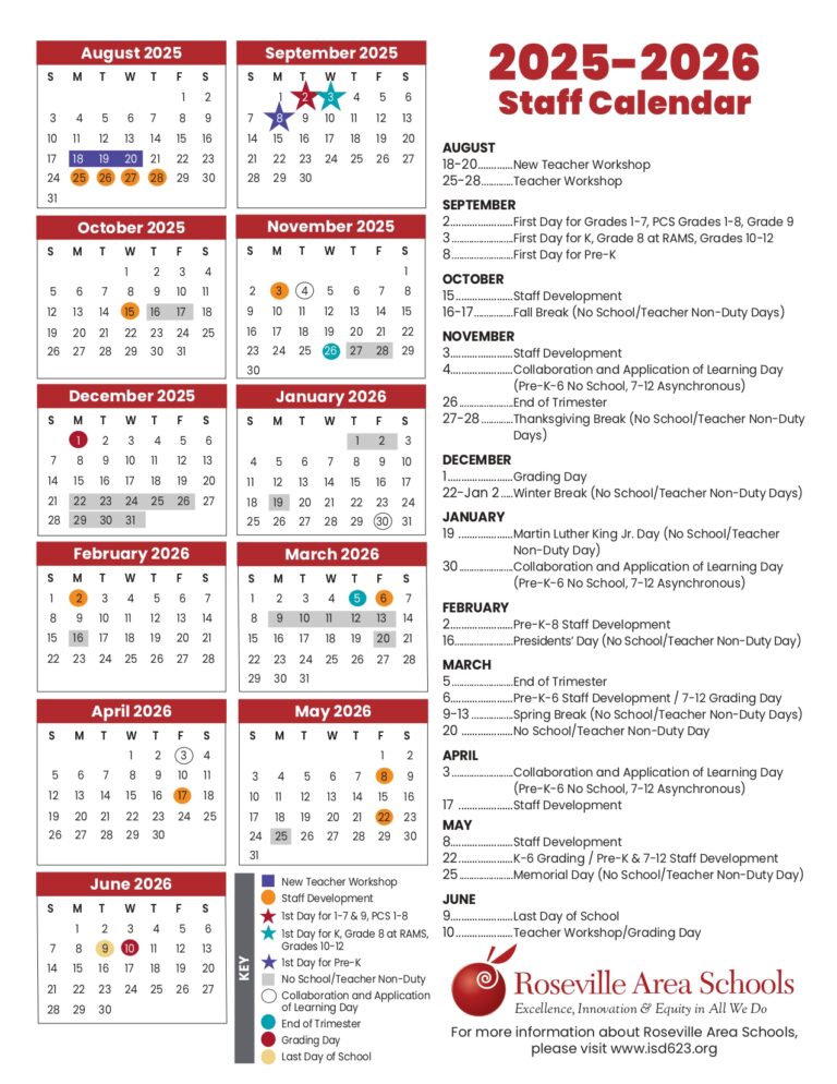 Roseville School District Calendar 2025 2026 2025 26 Mara Stacey
