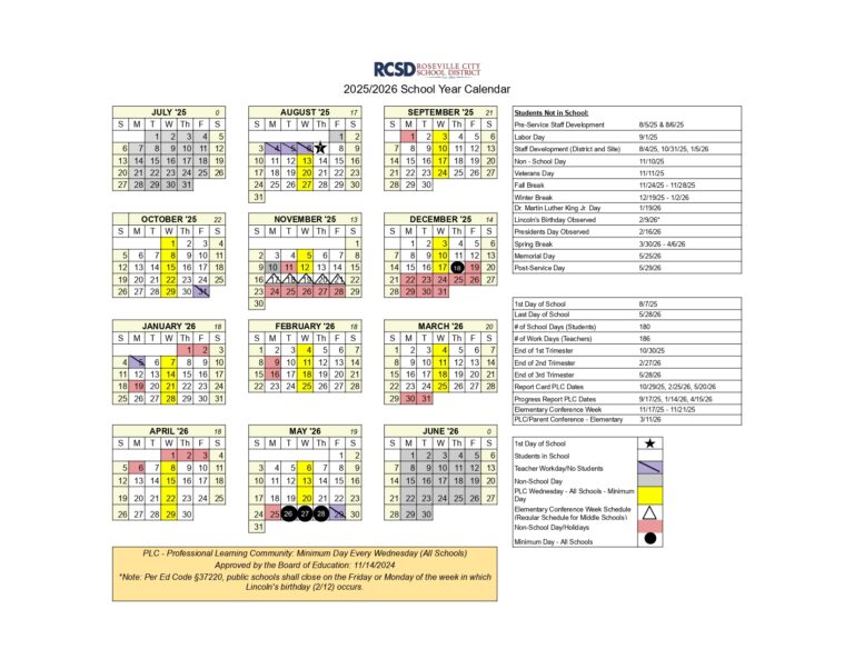 Roseville City School District Calendar 25 26 PDF EduCounty