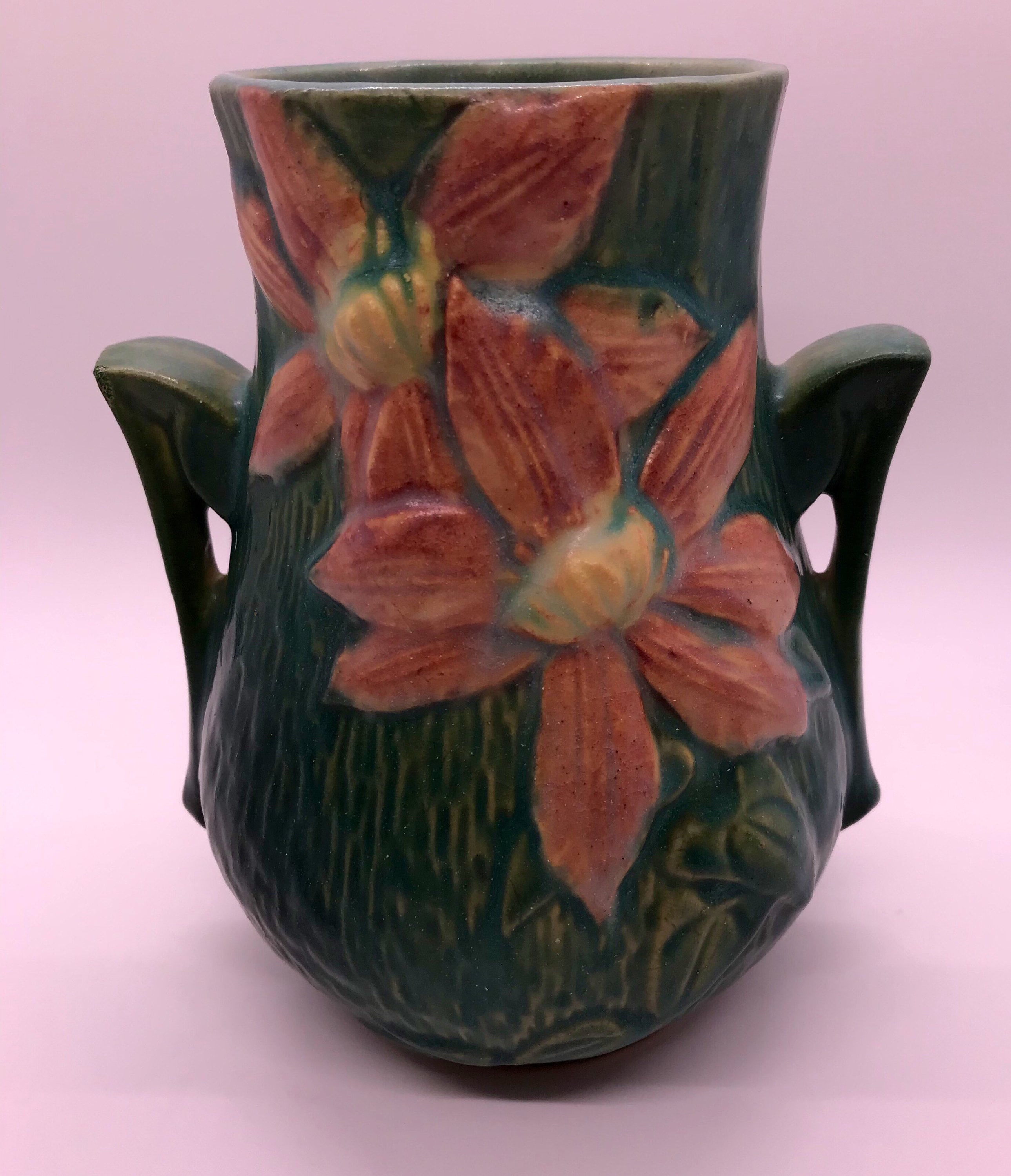 Roseville Clematis Green 1944 Vintage Art Pottery Handled Etsy