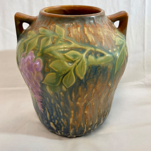 Roseville Pottery Wisteria Vase 634 7 Double Handled Vase Heavily