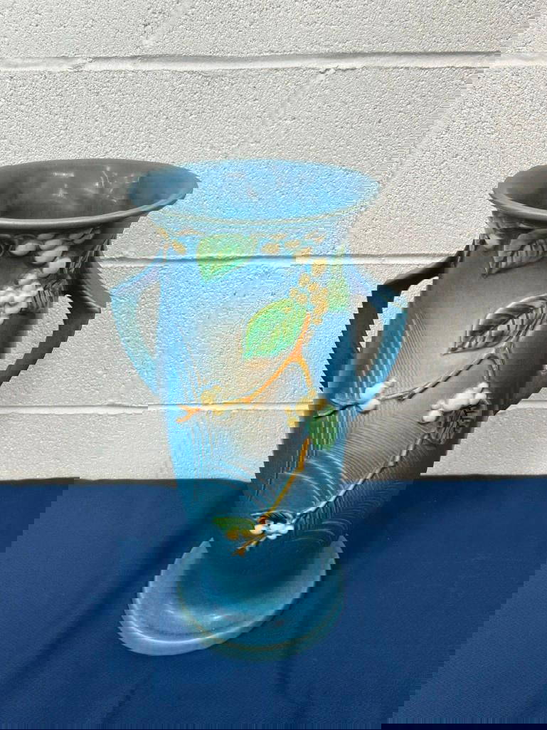 Roseville Snowberry Blue Vase Large Size Pottery Double Handled Vase