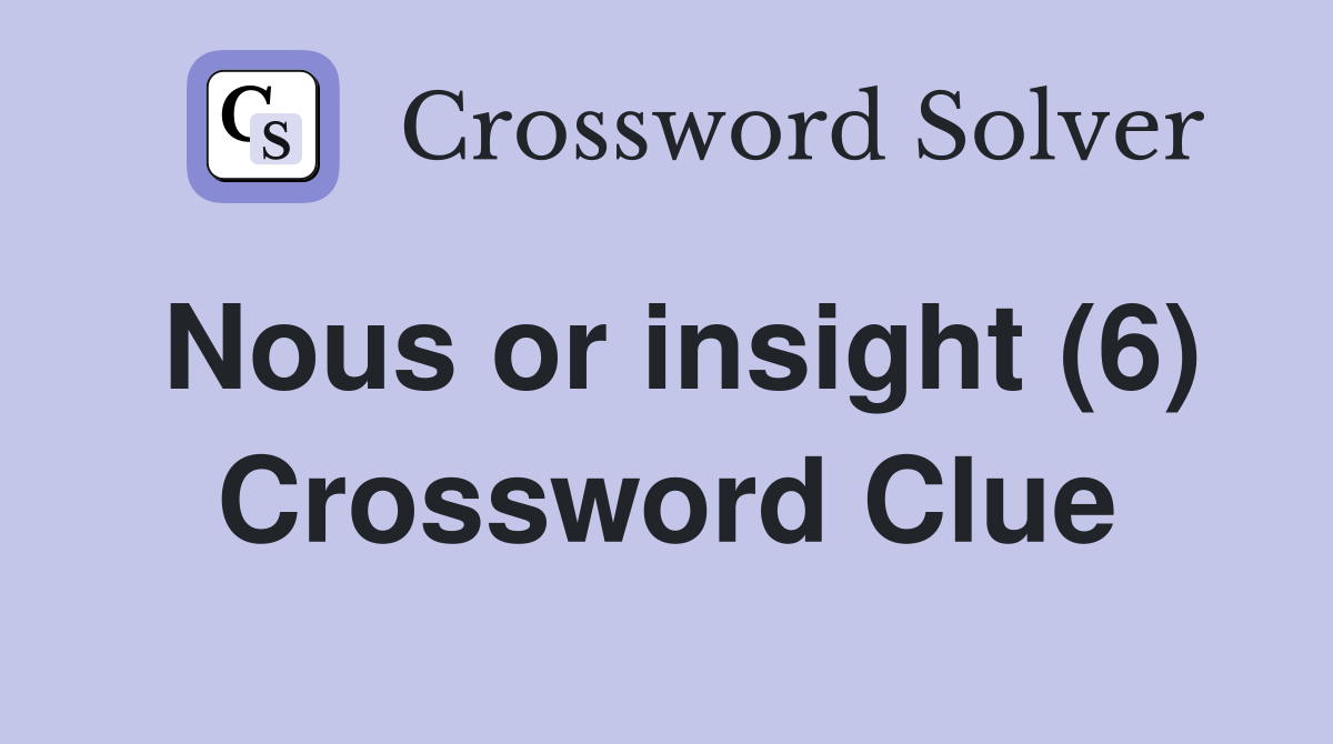 Nous or insight (6) Crossword Clue Answers Crossword Solver