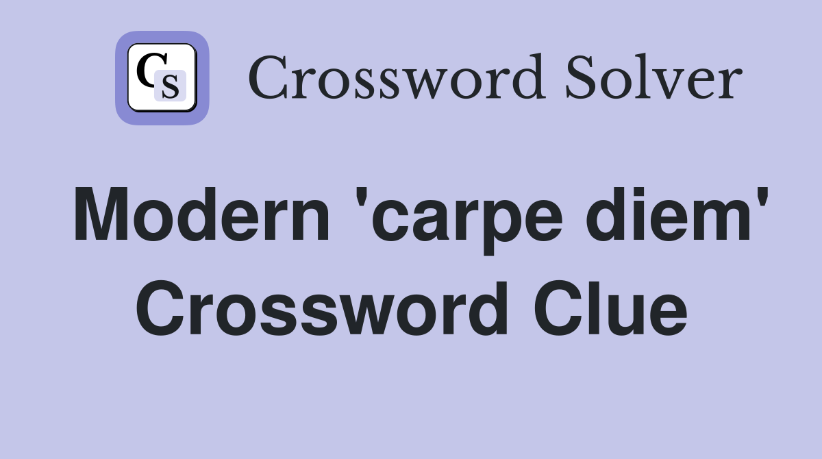 Modern #39 carpe diem #39 Crossword Clue Answers Crossword Solver