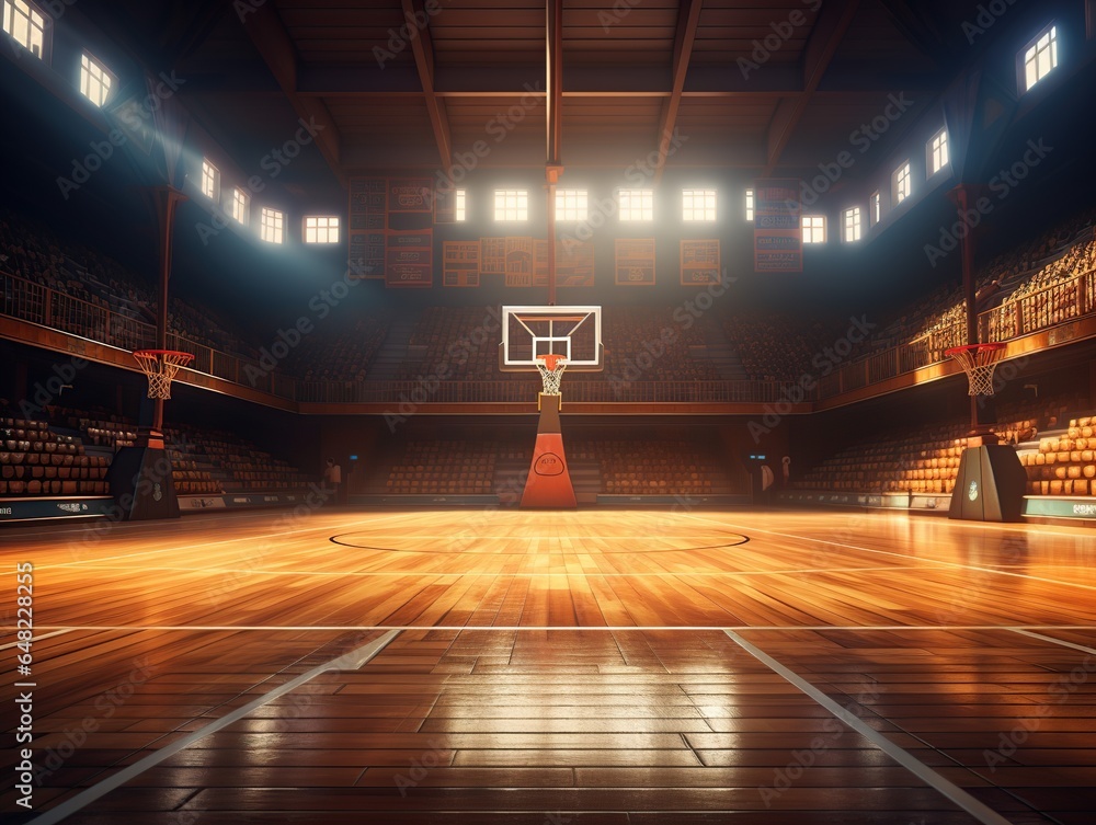 Basketball sport arena Interior view to wooden floor of basketball