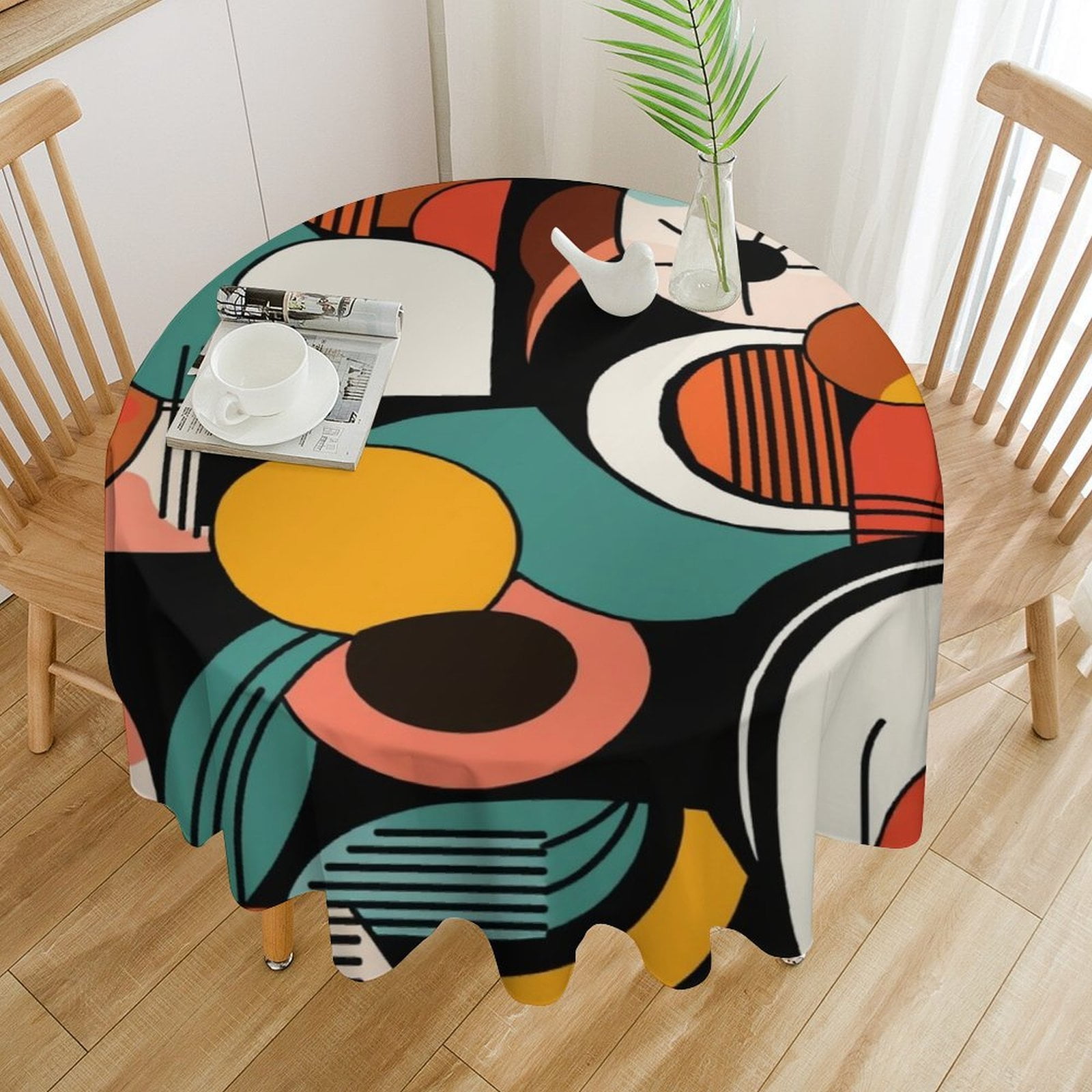 Abstract Colorful Shapes Table Cloth Round PVC Wedding Kitchen Dining