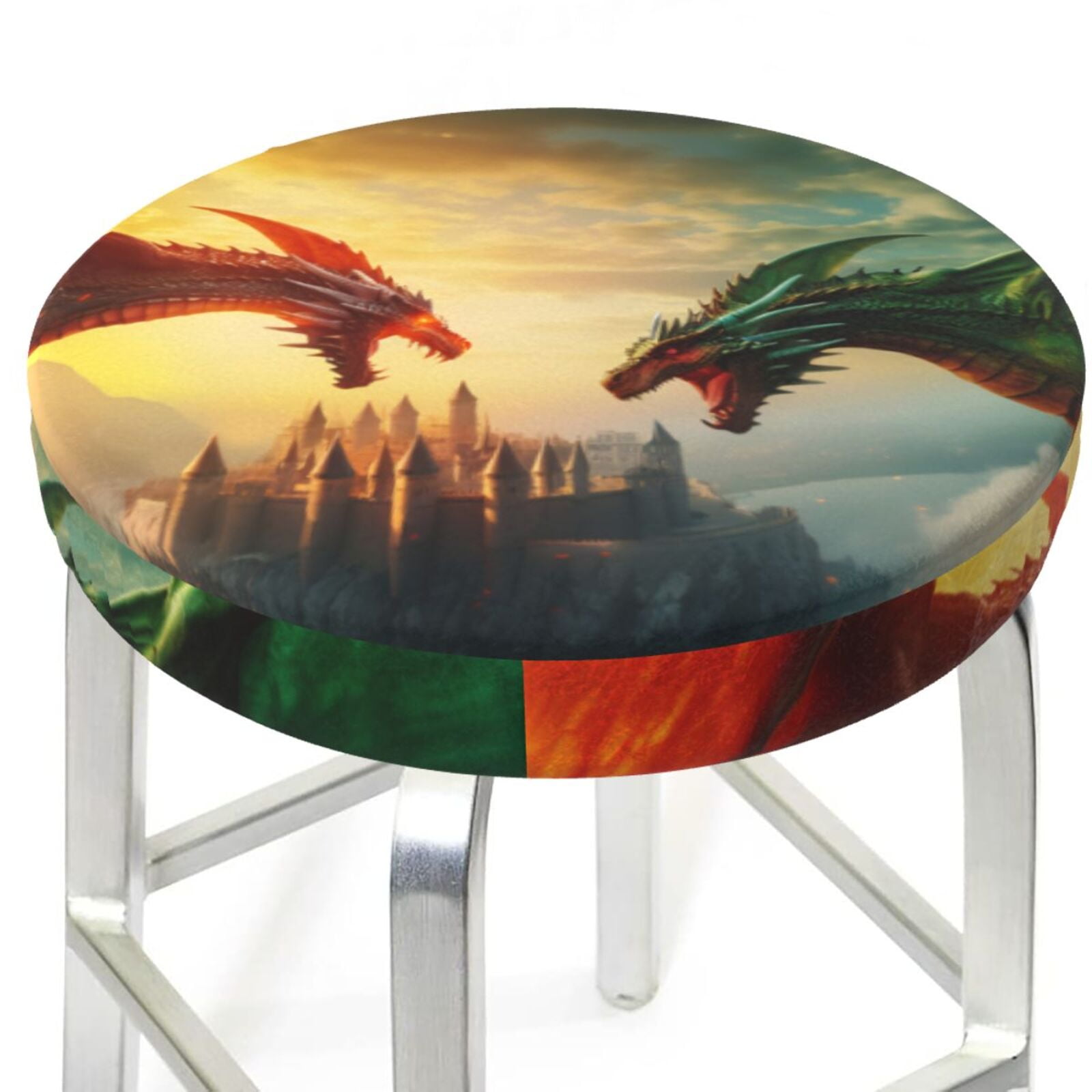 Castle Red Green Sky Dragon Bar Stool Covers Round Washable Round