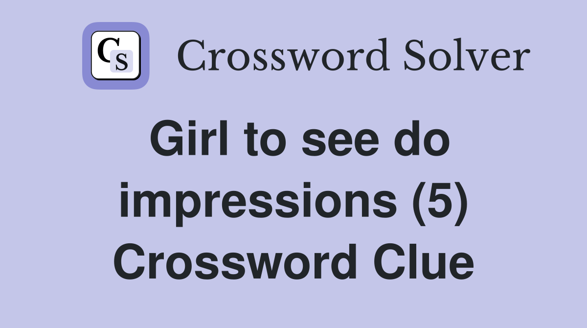 Girl to see do impressions (5) Crossword Clue Answers Crossword Solver