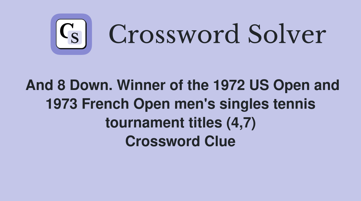 And 8 Down Winner of the 1972 US Open and 1973 French Open men #39 s