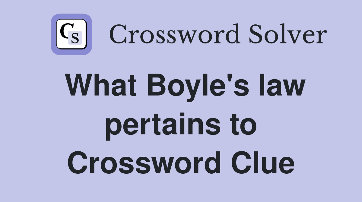 What Boyle #39 s law pertains to Crossword Clue Answers Crossword Solver