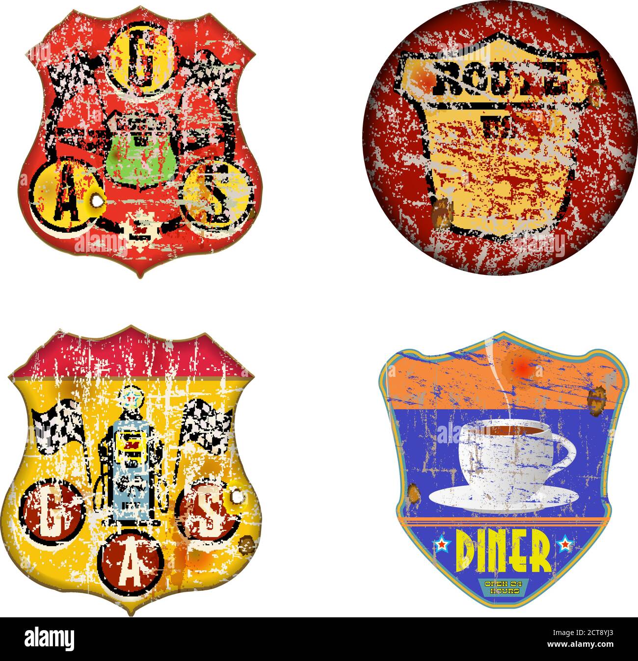 Vintage Grungy American Route 66 Sign Template Retro Grungy Vector