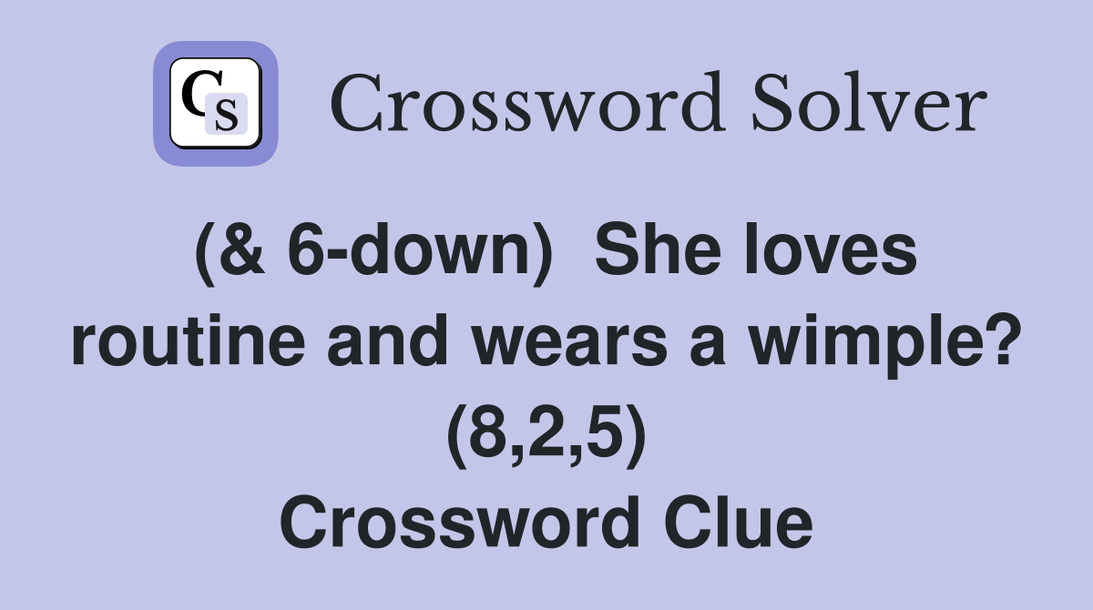 ( 6 down) She loves routine and wears a wimple? (8 2 5) Crossword