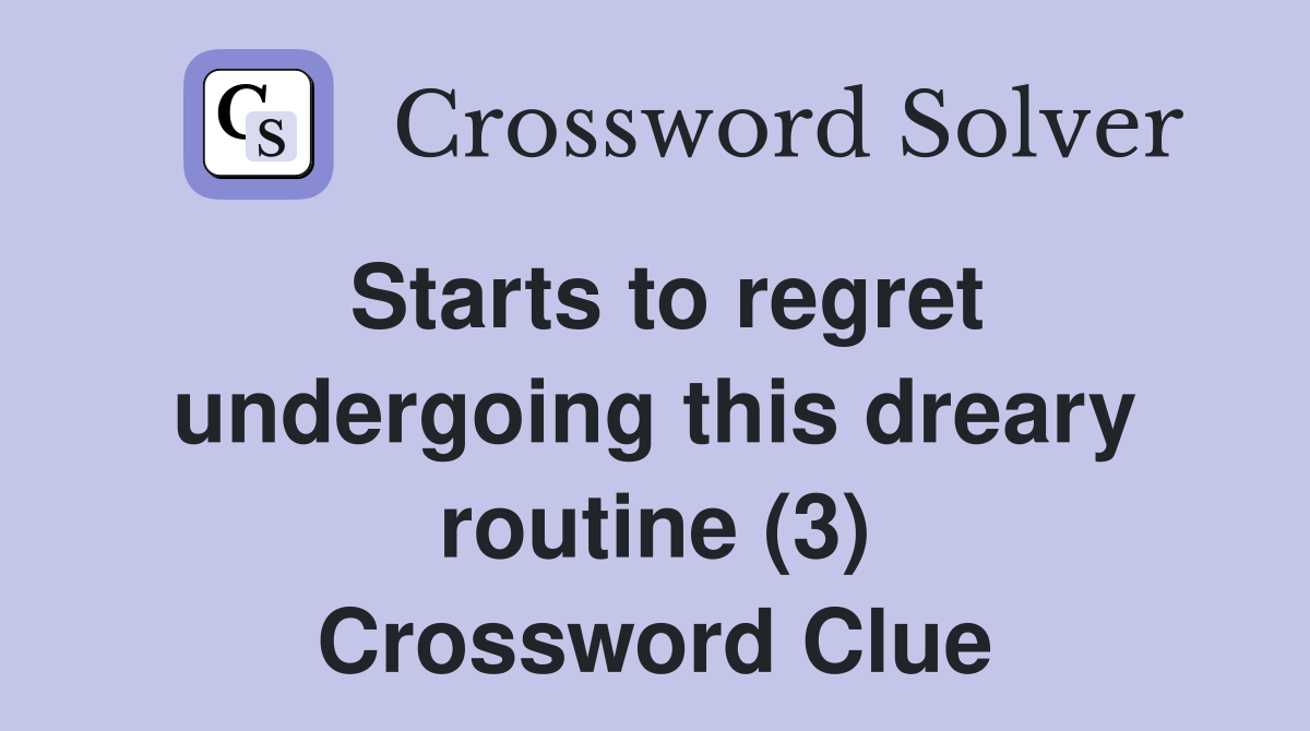 Starts to regret undergoing this dreary routine (3) Crossword Clue