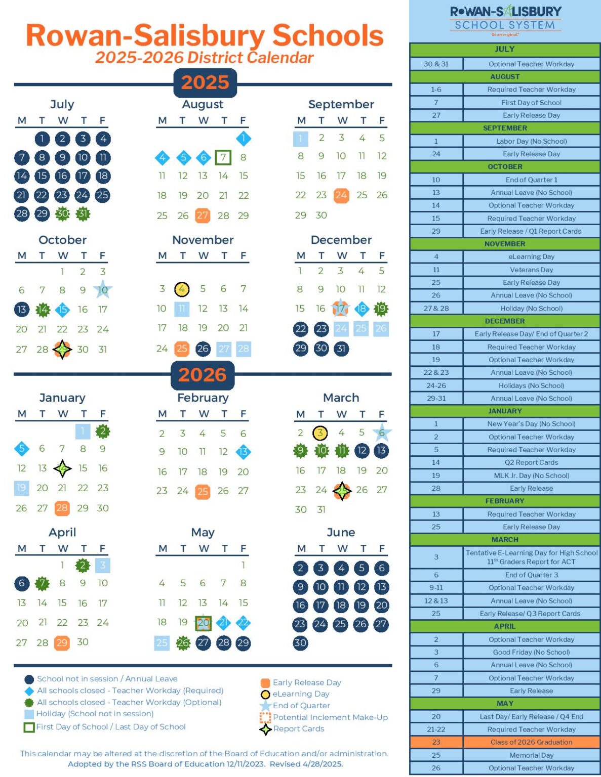 Rowan Salisbury Schools Calendar 2025 2026 in PDF School Calendar Info