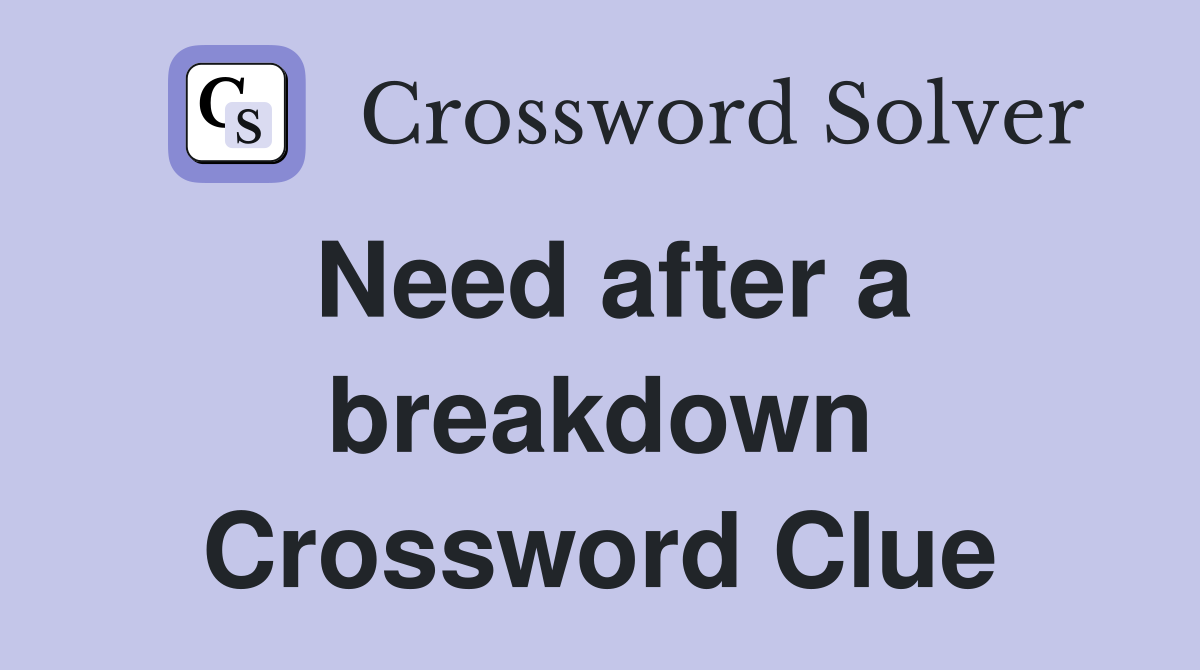 Need after a breakdown Crossword Clue Answers Crossword Solver
