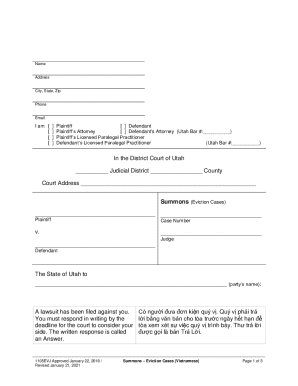 Fillable Online Summons for Eviction in Utah Fax Email Print pdfFiller