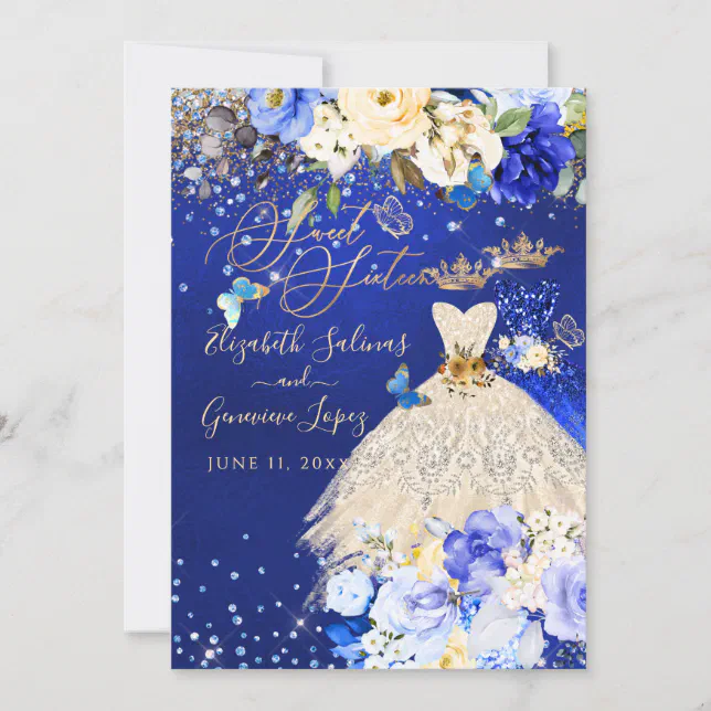 PixDezines Twins Quinceanera Royal Blue Gold Invitation Zazzle