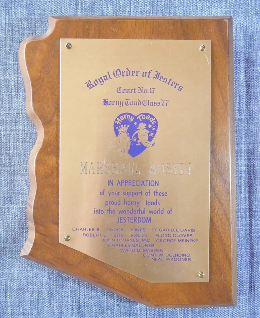 1977 ROYAL ORDER of JestersToad Class of #39 77 Plaque Court 17