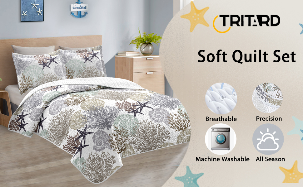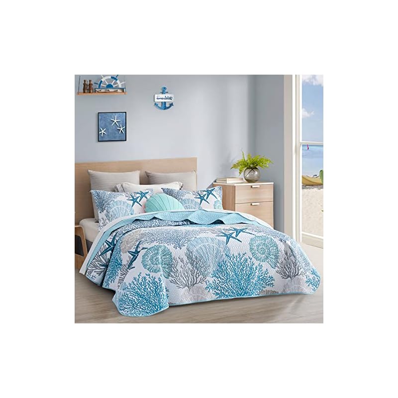 Tritard 3 Piece Coastal Quilt Sets Full/Queen Size Reversible