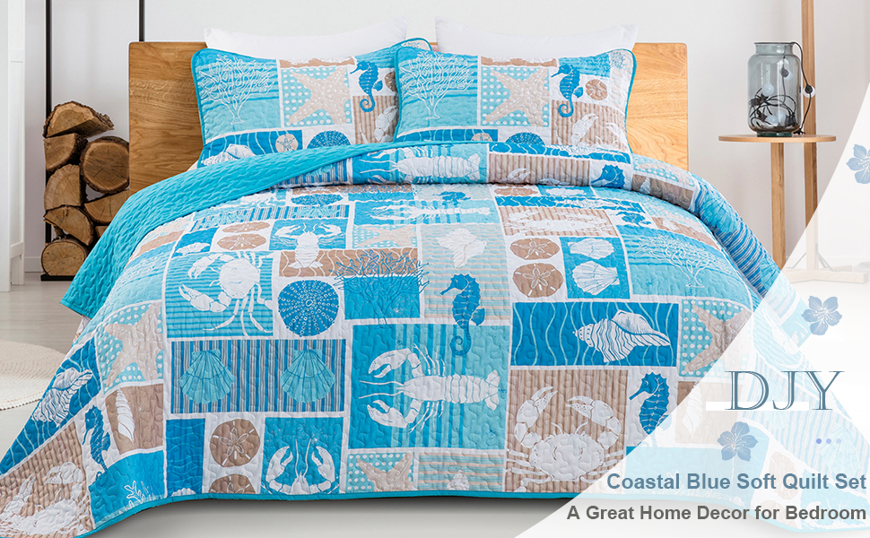 Amazon com: DJY Coastal Quilt Set King Coastal Blue Pattern Quilt