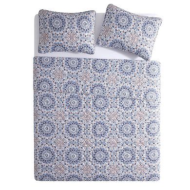 VCNY Home Sea Medallion 3 Piece Printed Seashell Coastal Quilt Set