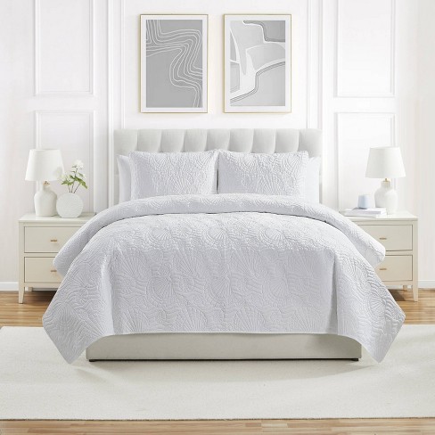 Vcny 3pc Full/queen Pinsonic Quilt Set White: Hypoallergenic Microfiber