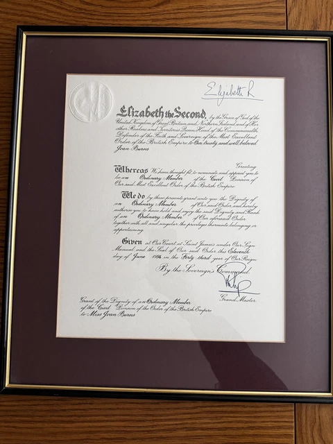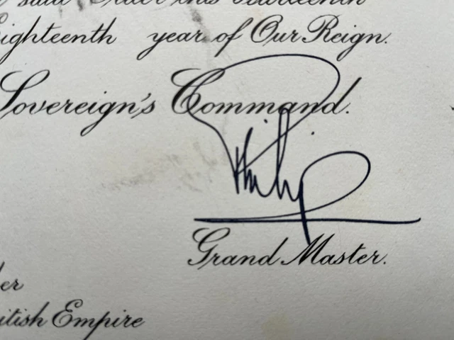 ROYAL FAMILY OBE Certificate Signed by HM Queen Elizabeth II HRH