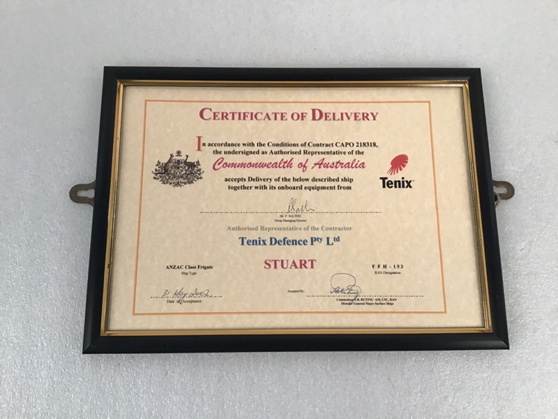 Certificate Certificate of Delivery HMAS Stuart III 2002 NAVY 15510