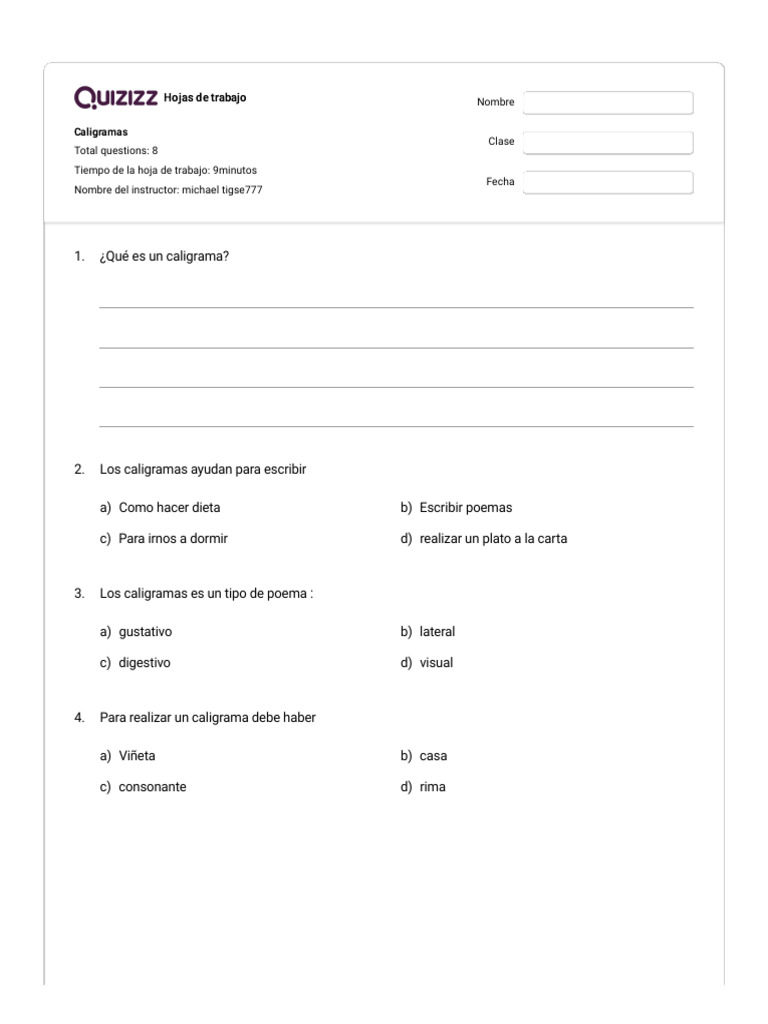 Caligramas Quizizz PDF