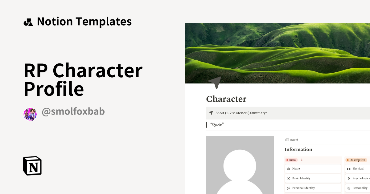 RP Character Profile Template Notion Marketplace