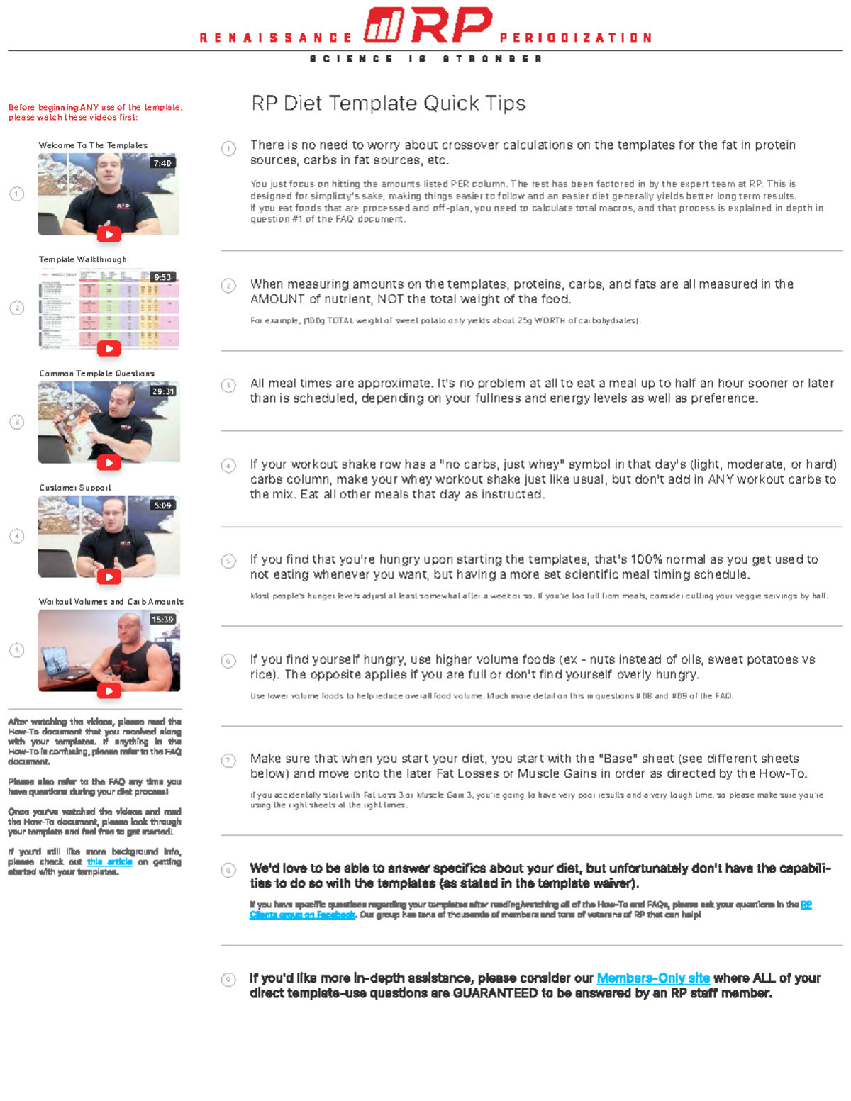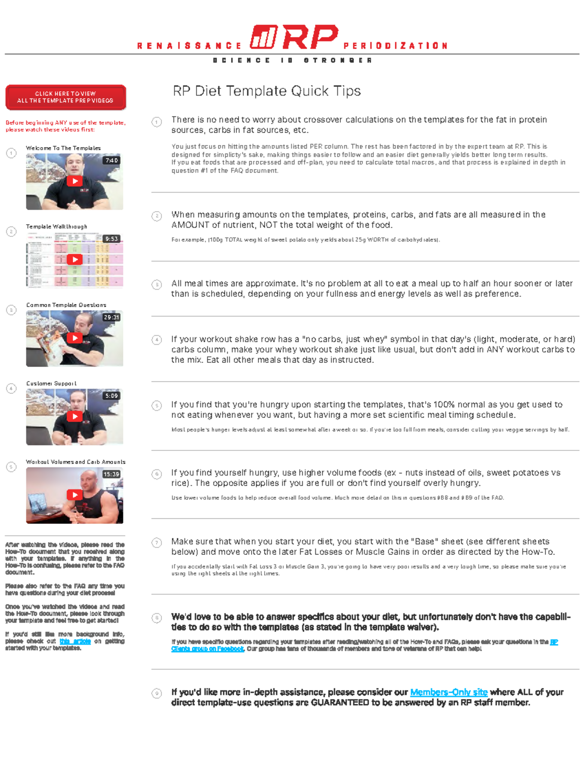RP Diet Template Quick Tips: Welcome To The Templates PDF