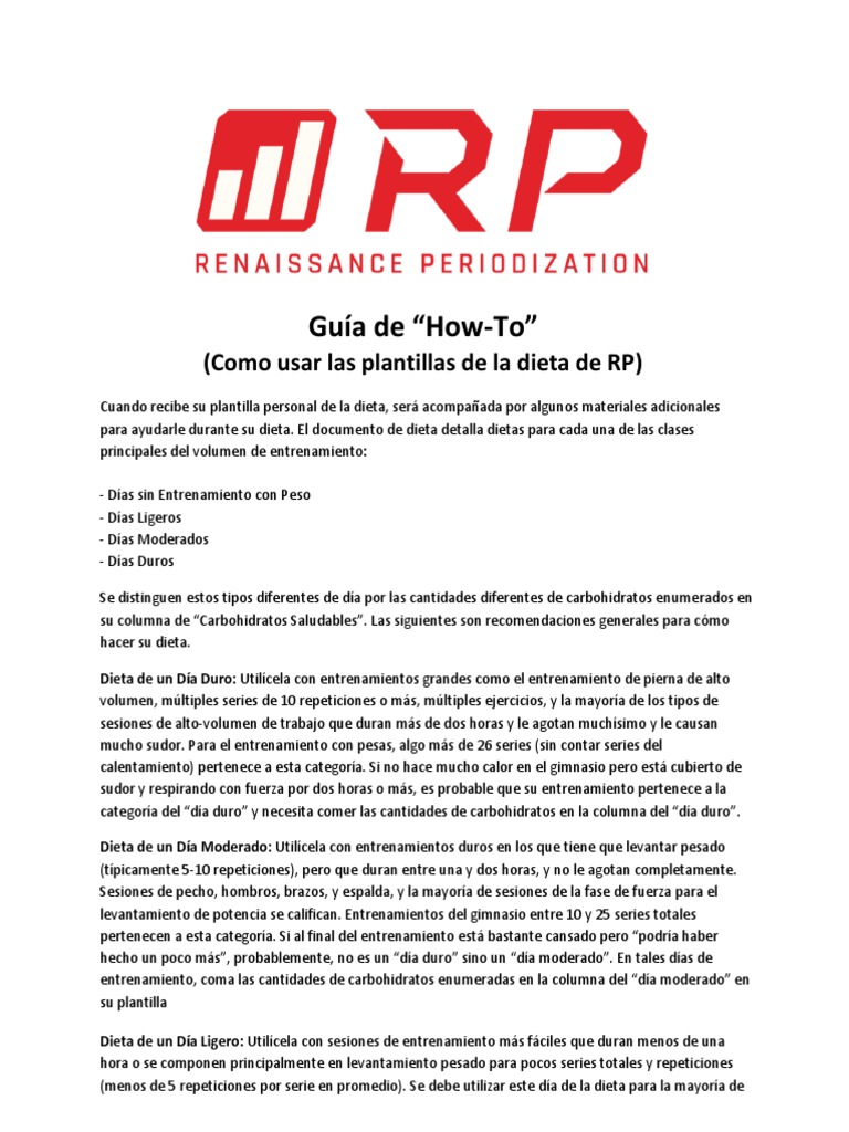 RP Diet Template How To Use Guide en pt PDF