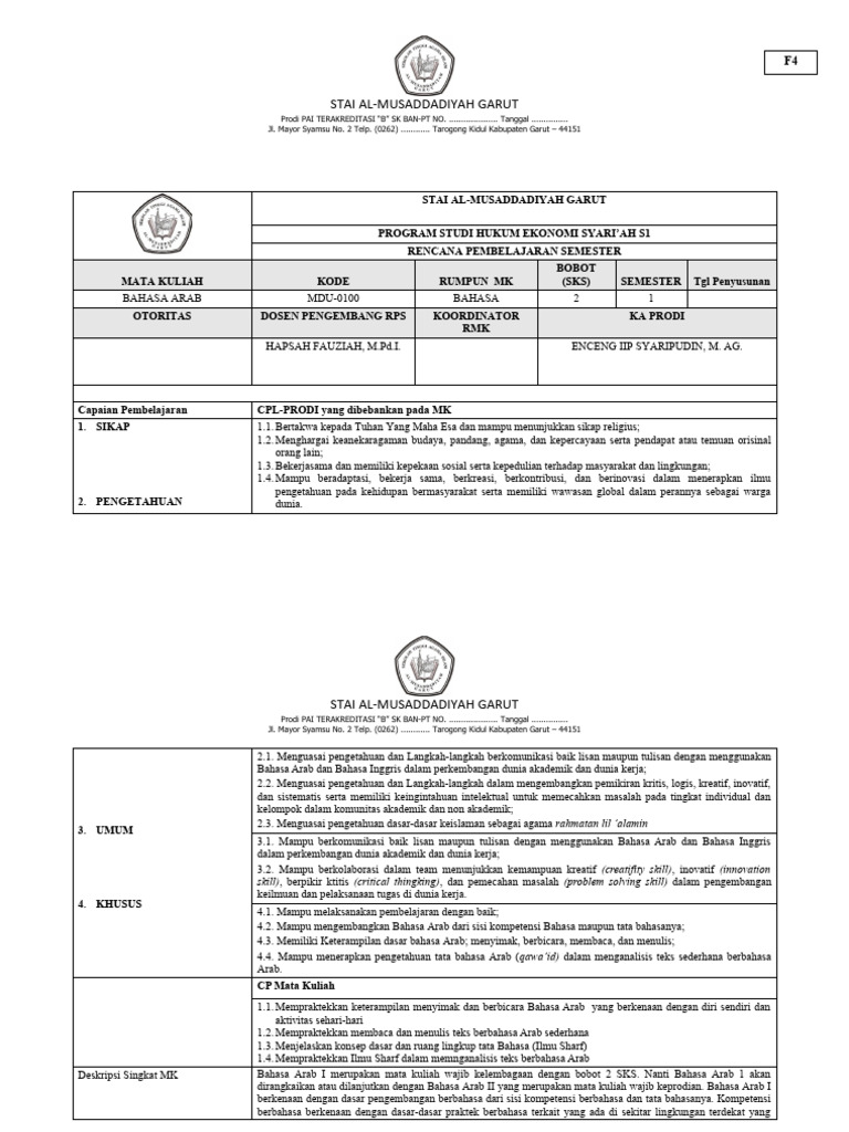 RPS Bahasa Arab I HESy (23 24) PDF