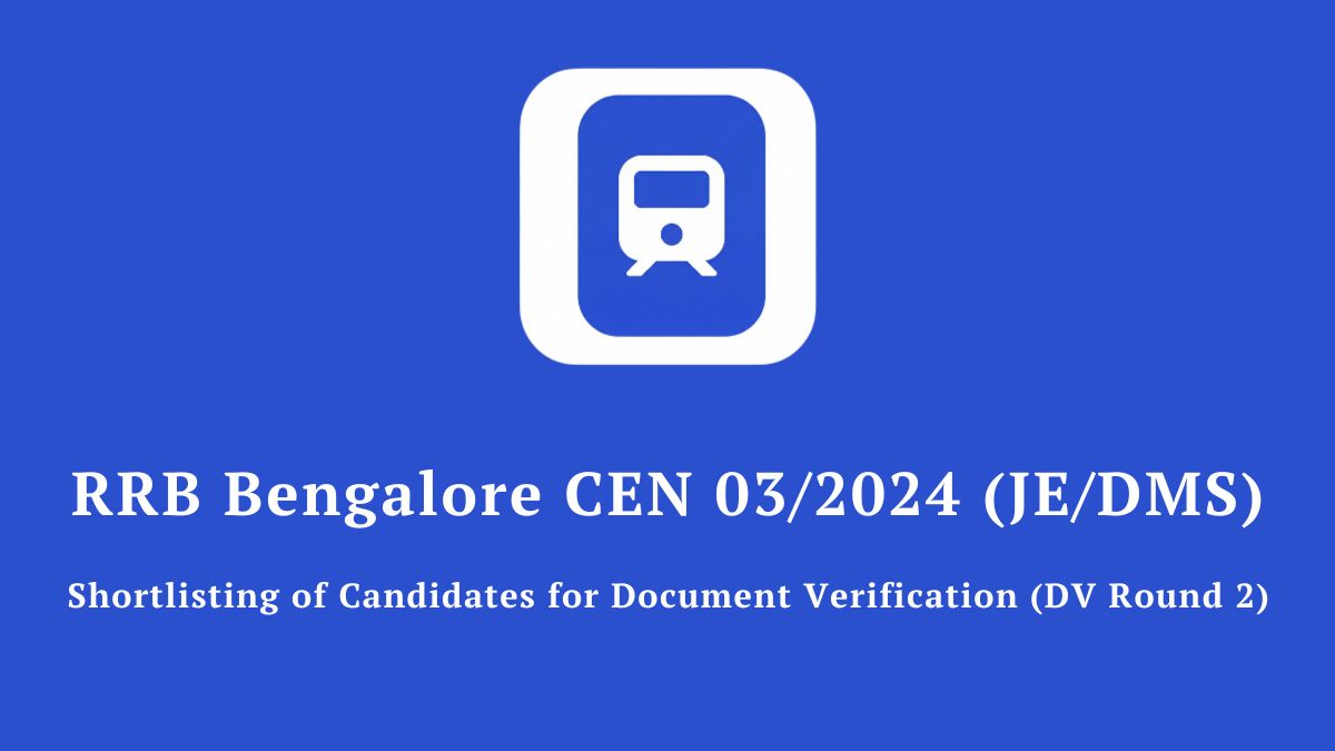 RRB Bangalore JE 2024 (CEN 03/2024): 2nd Round Document Verification