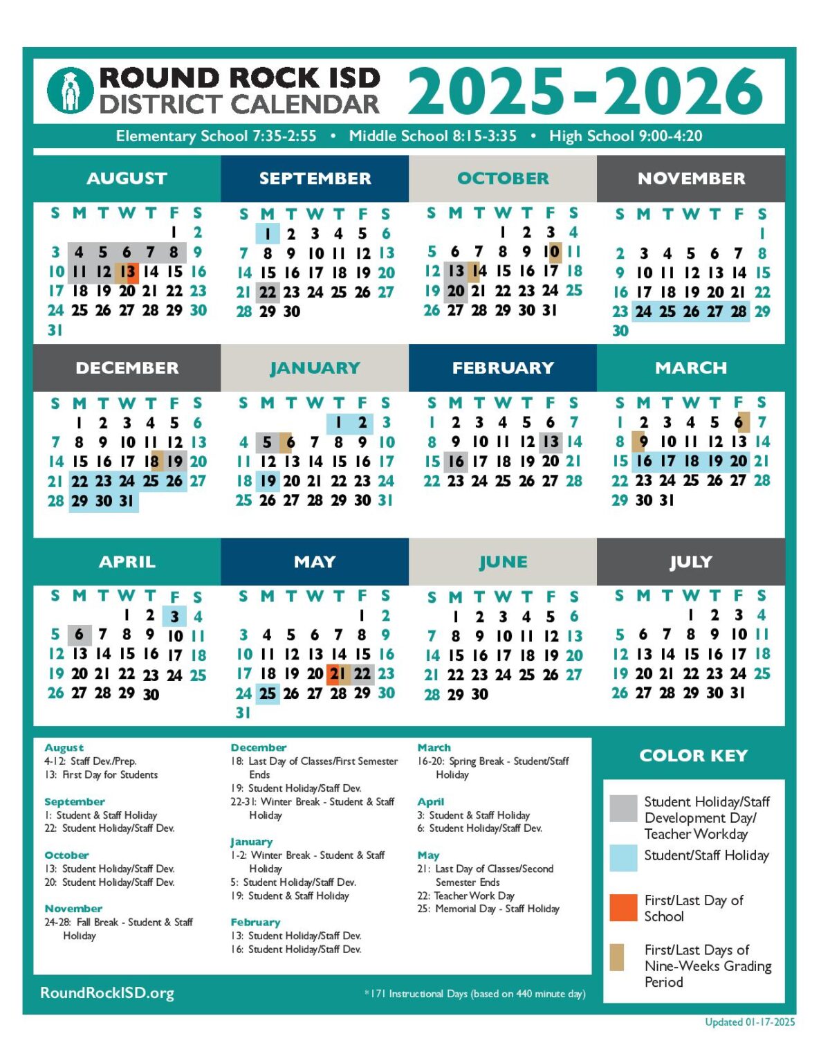 Round Rock ISD 2025 2026 School Calendar Round the Rock