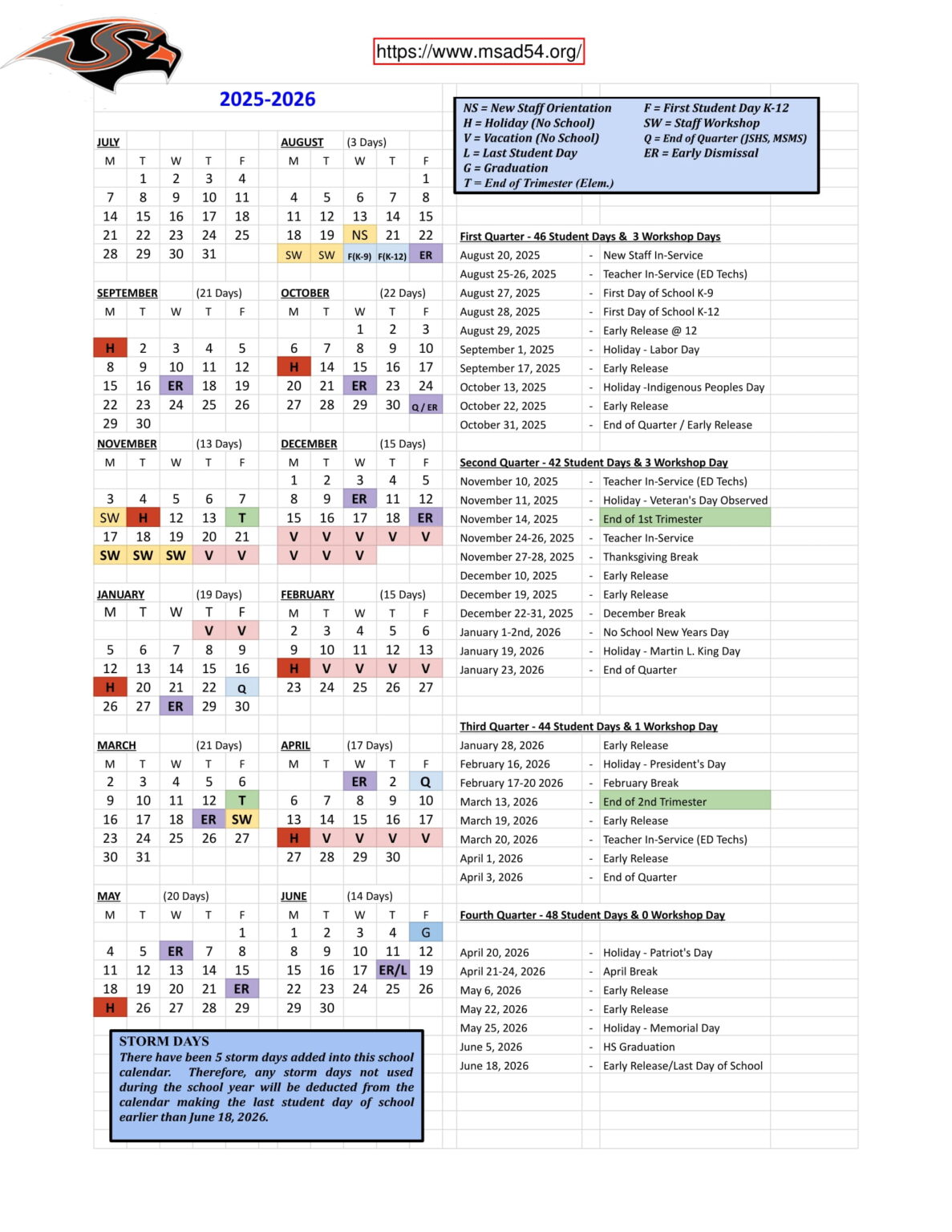 MSAD 54 RSU 54 ME Calendar 25 26 Revised EduCounty