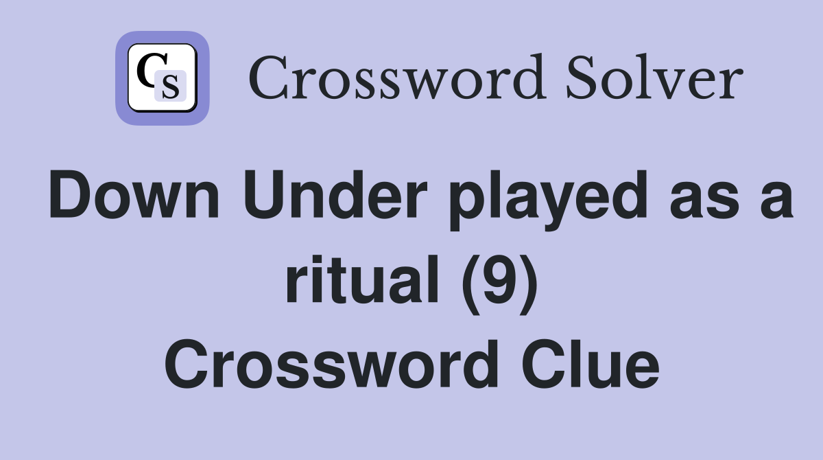 Down Under played as a ritual (9) Crossword Clue Answers Crossword