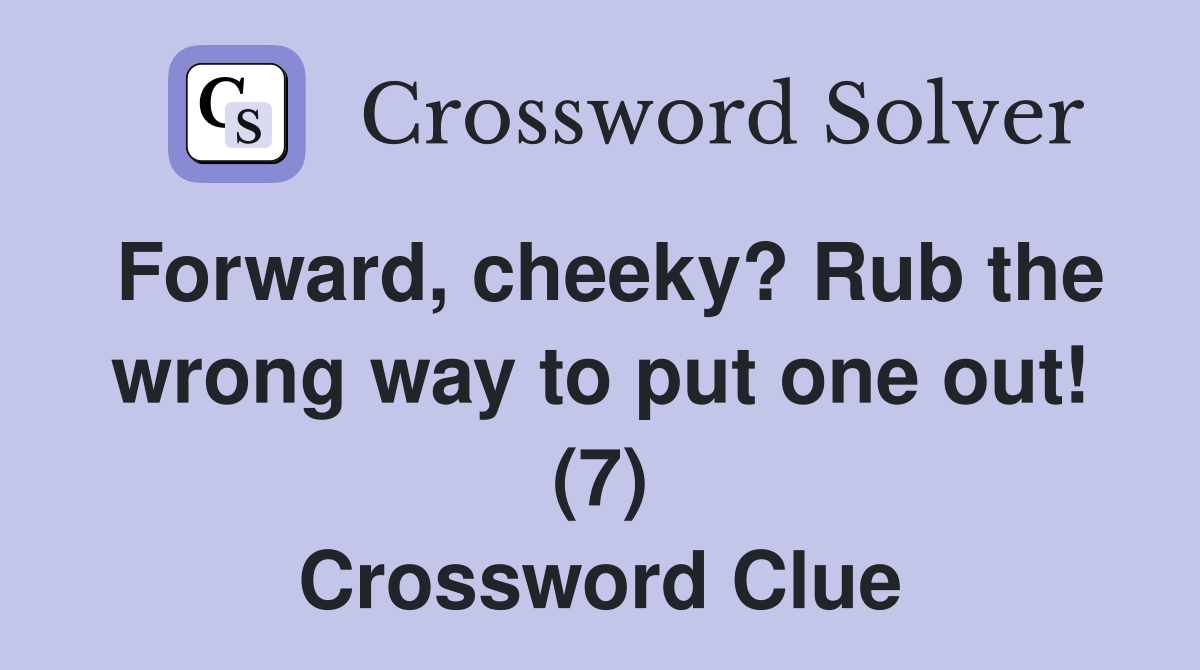 Forward cheeky? Rub the wrong way to put one out (7) Crossword Clue