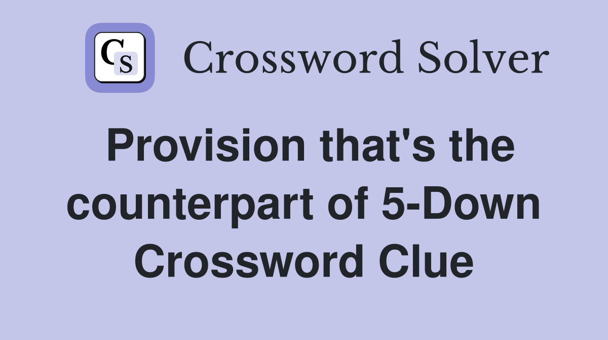 Provision that s the counterpart of 5 Down Crossword Clue Answers