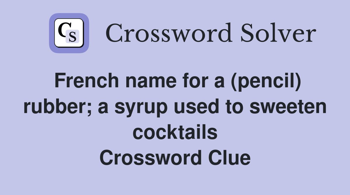 French name for a (pencil) rubber a syrup used to sweeten cocktails