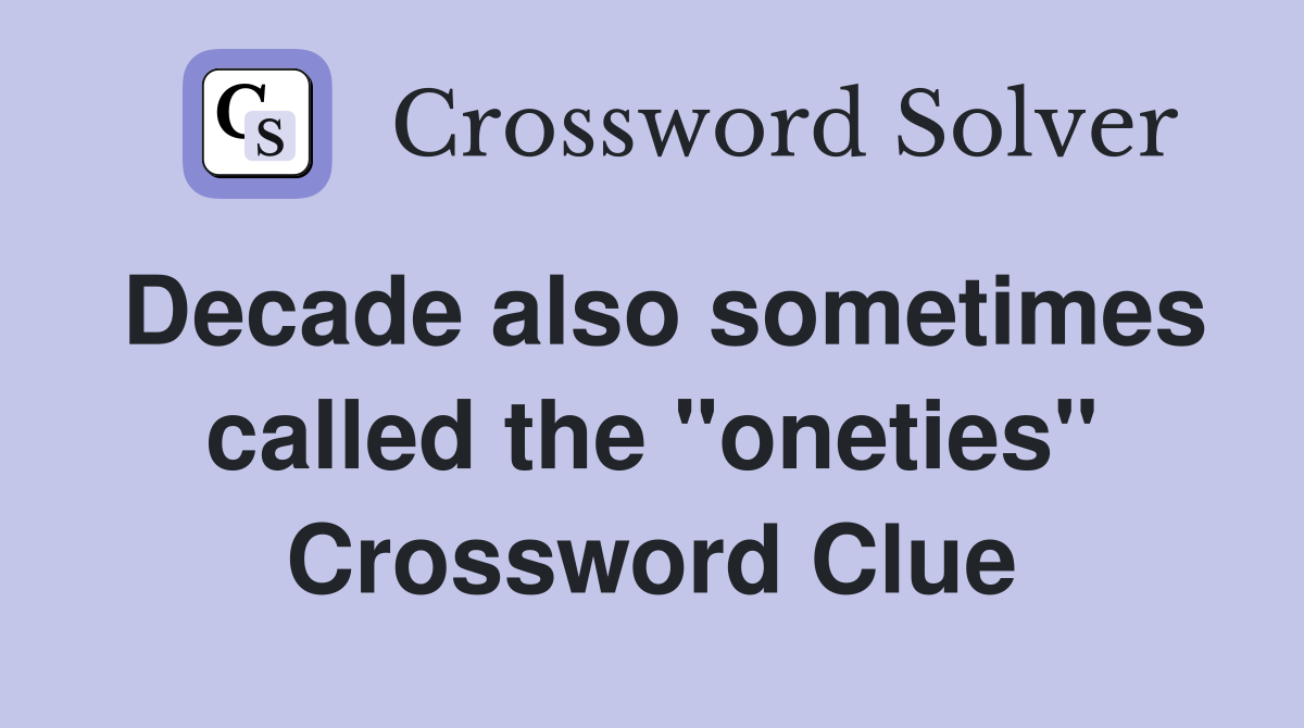 Decade also sometimes called the quot oneties quot Crossword Clue Answers