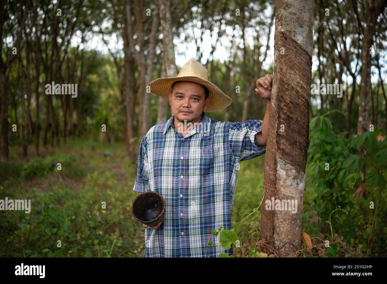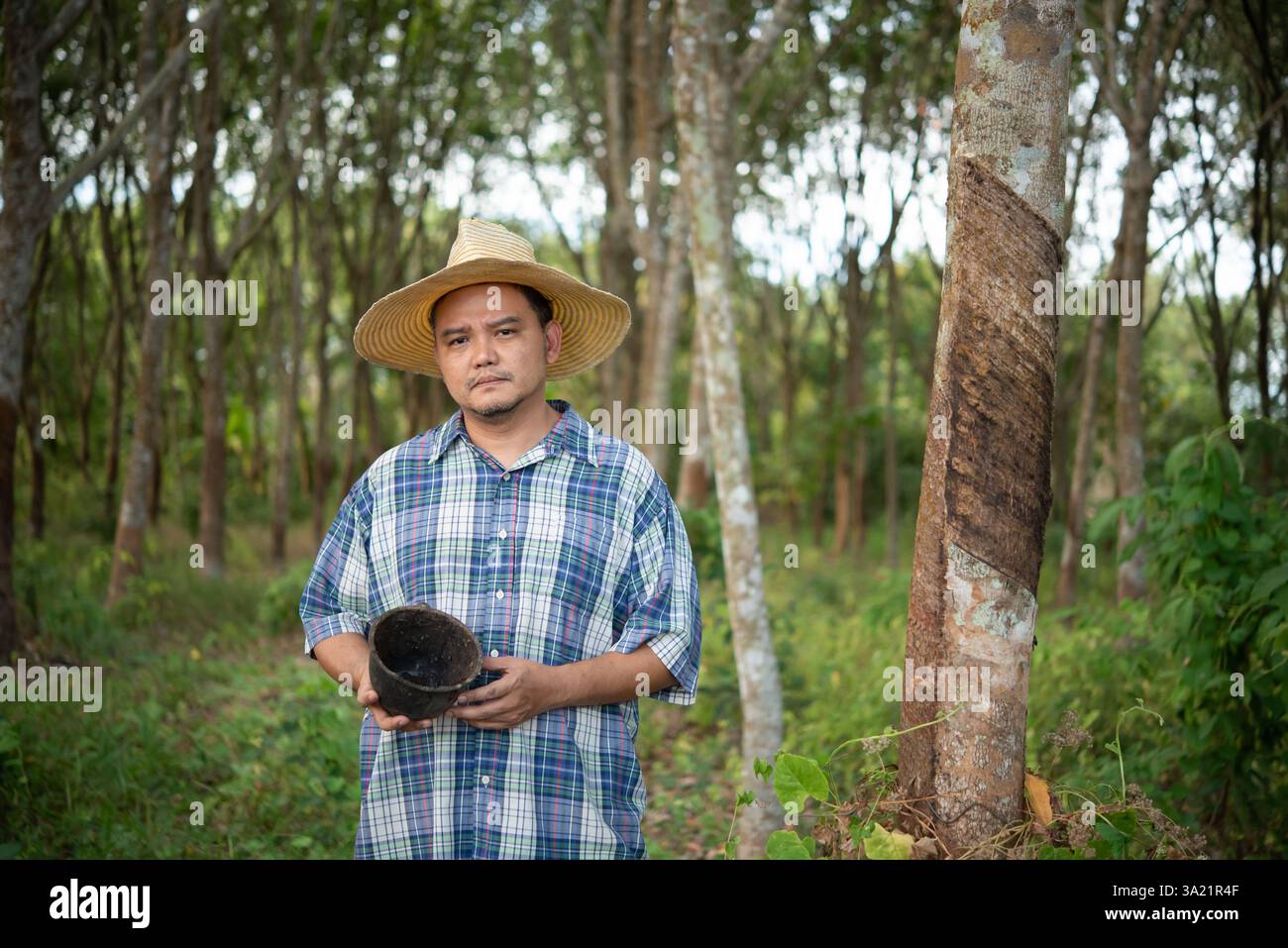 Para Rubber Tree Plantation Yield Harvest Management Stock Image