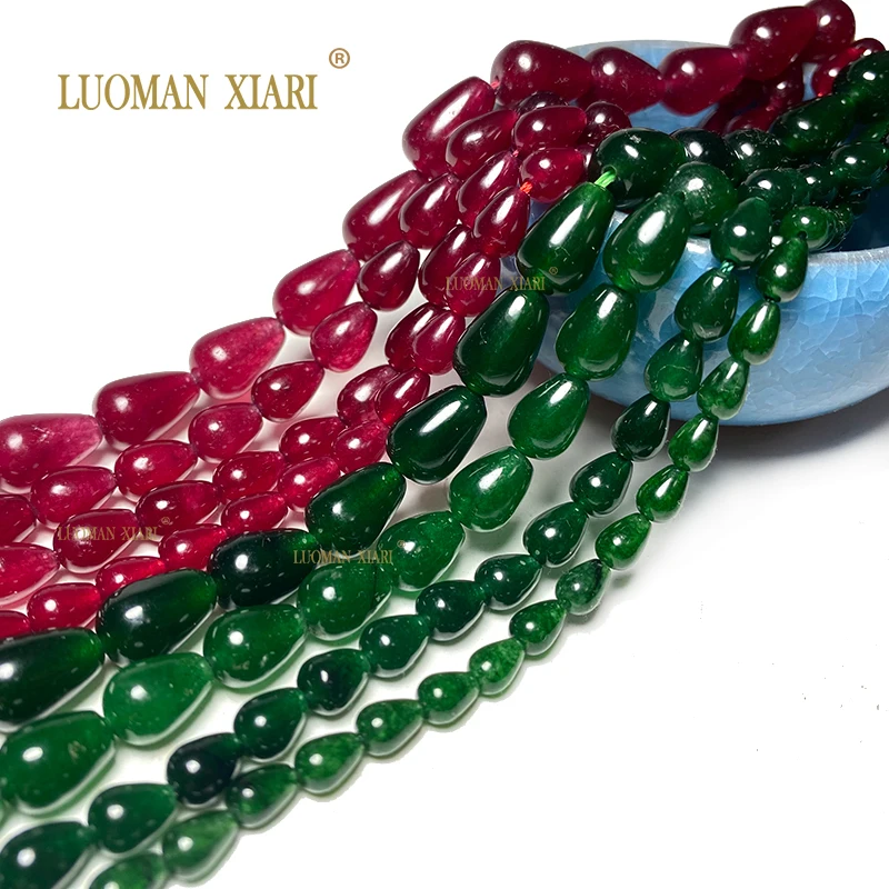Natural Stone Water Drops Ruby Red Emerald Green Color Chalcedony Loose