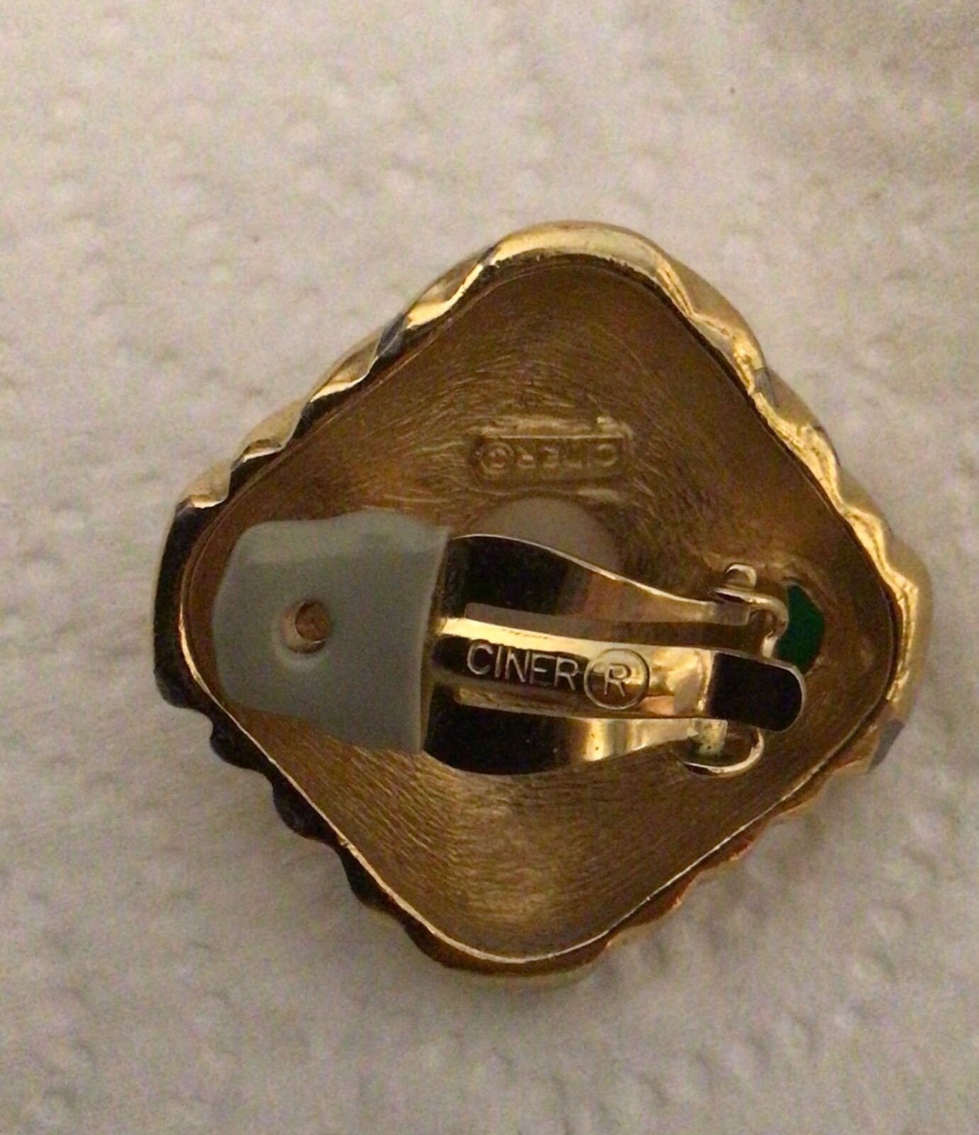 CINER RARE Earrings Clip Ruby Red Emerald Green Cab Gem